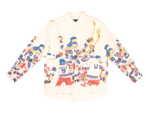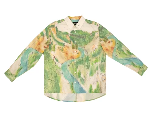 Utilizing hand drawn text, this graphic references the reverse printed “Cowboy” shirt used in the company’s early seasons.